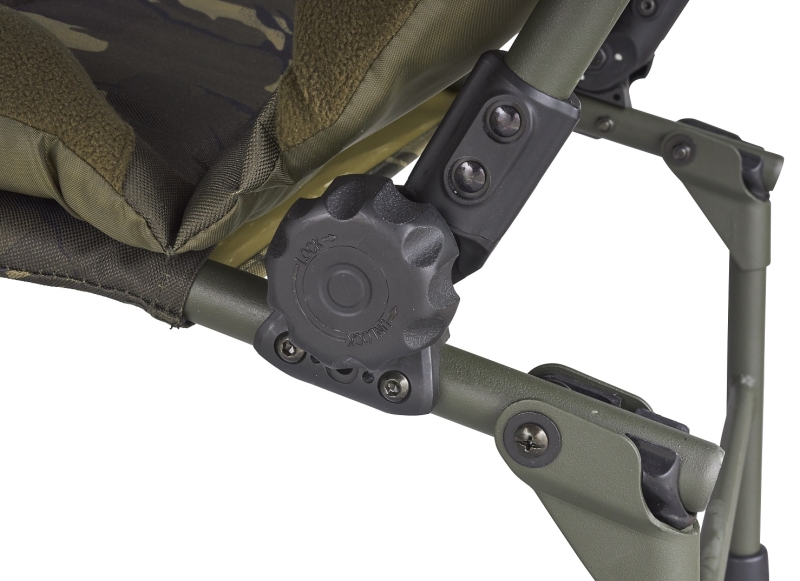 Nagyméretű, kényelmes és erősen párnázott karosszék, melynek karfái oldalt és a háttámla tetején meleg gyapjúval vannak ellátva a még nagyobb kényelem érdekében. A szerkezet könnyű, de nagyon erős alumínium anyagból készült. A levehető gyapjúból készült karfa huzatok meleg kézérzetet biztosítanak. A teleszkópos lábakon lévő széles csúszásgátló lábak bármilyen tereppel megbirkóznak. Csukló a kényelmes dőlésszögbeállításhoz. Vonzó álcázott kialakítás.